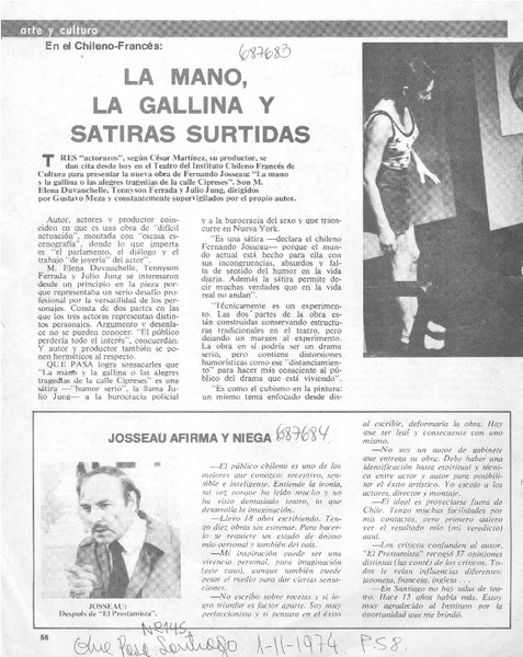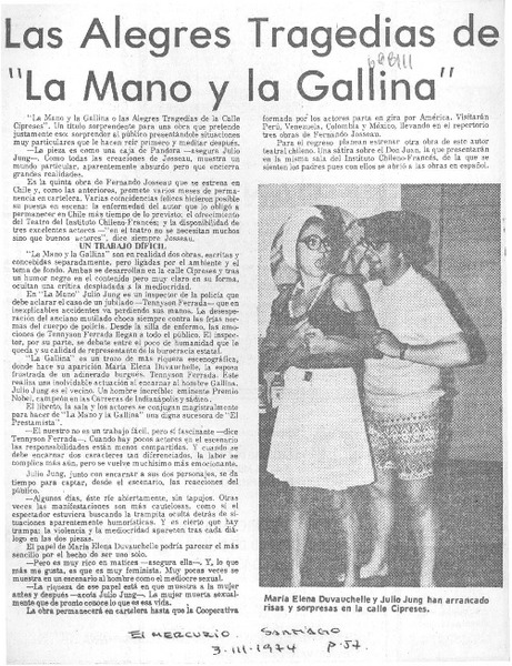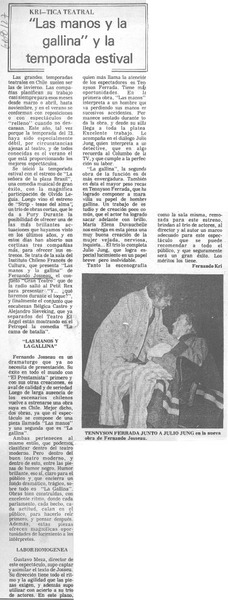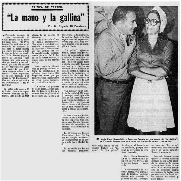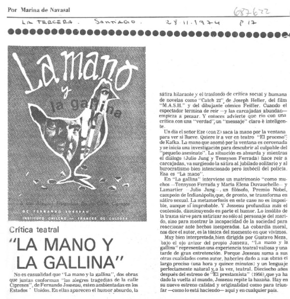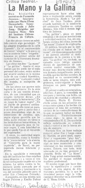 "La Mano y la gallina" se repone en Santiago [artículo].