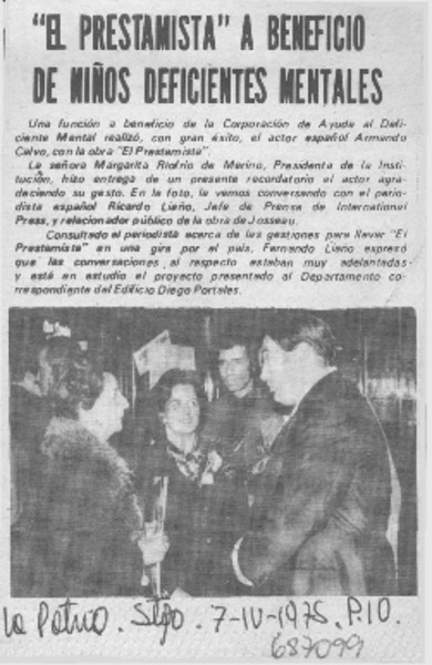 "El Prestamista" a beneficio de niños deficientes mentales. [artículo]