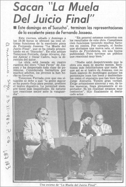 "La Muela del juicio final": una obra sólo con desenlaces [artículo] R.G.B.