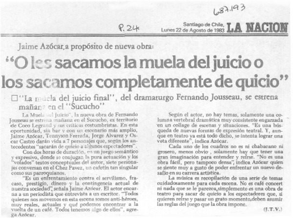 "O les sacamos la muela del juicio o los sacamos completamente de quicio" [artículo] J.T.V.