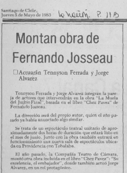 El Dramaturgo Josseau lanzó su "Chez Pavez". [artículo]