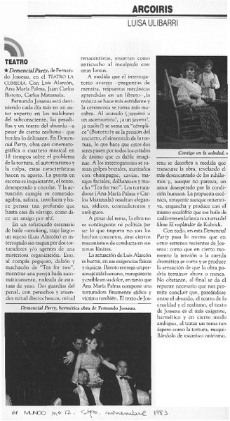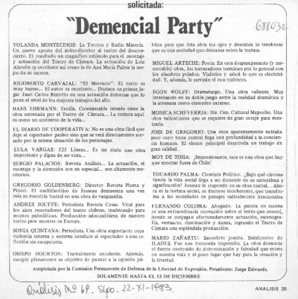 "Demencial Party" [artículo] Yolanda Montecinos.