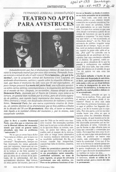 Teatro no apto para avestruces : [entrevista] [artículo] Juan Andrés Piña.