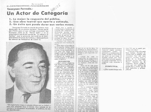 Un actor de categoría [entrevista]. [artículo] :