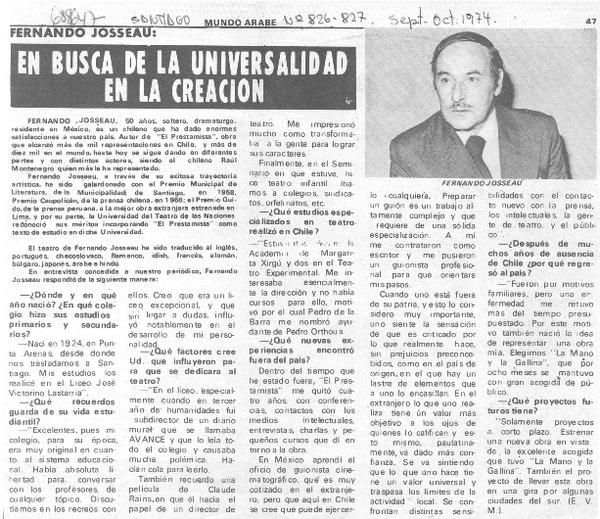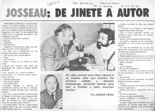 Autores chilenos - Josseau, Fernando - [entrevista]
