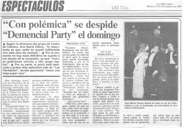 Con polémica" se despide "Demencial party" el domingo : [entrevista] [artículo].