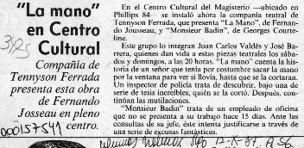 "La mano" en Centro Cultural [artículo].