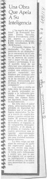 Una obra que apela a su inteligencia. [artículo]