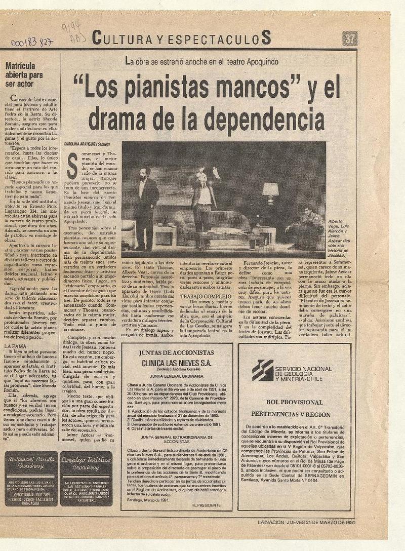 "Los pianistas mancos" y el drama de la dependencia [artículo] Carolina Aránguiz.