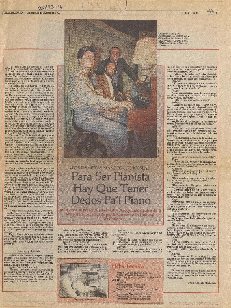 Para ser pianista hay que tener dedos pa'l piano [artículo] Juan Antonio Muñoz H.