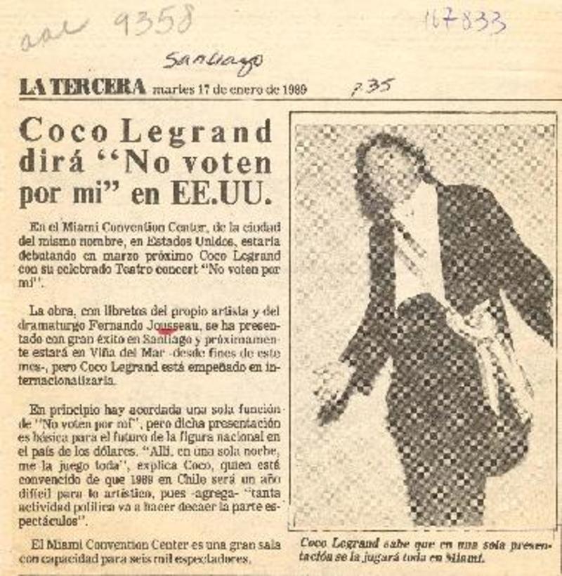 Coco Legrand dirá "No voten por mí" en EE. UU. [artículo]
