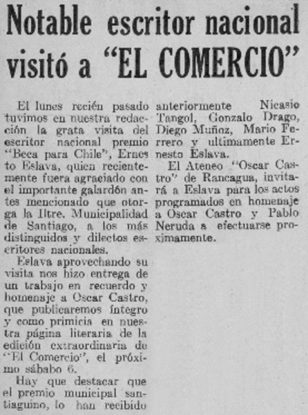Ernesto Eslava [artículo] Erasmo Bernales Gaete.