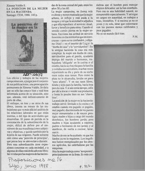 VALDES S., XIMENA - POSICION DE LA MUJER EN LA HACIENDA, LA