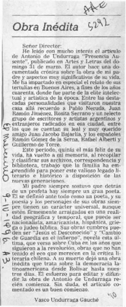 Obra inédita [artículo] Vasco Undurraga Gauché.