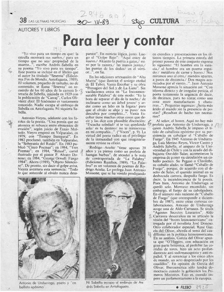 Autores chilenos - Undurraga, Antonio de - Entrevista