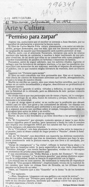 "Permiso para zarpar" [artículo] Enrique Skinner Zavala.