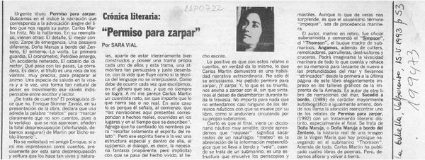 "Permiso para zarpar" [artículo] Sara Vial.