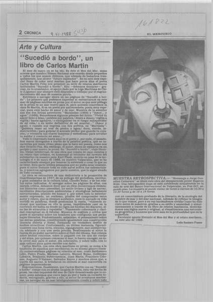 "Sucedió a bordo", un libro de Carlos Martin [artículo] León Santoro Funes.