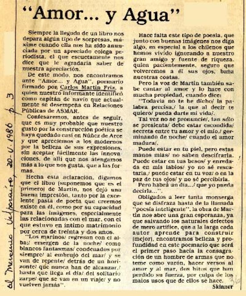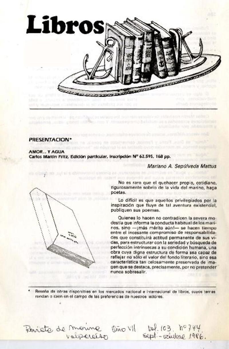 Amor -- y agua [artículo] Mariano A. Sepúlveda Mattus.