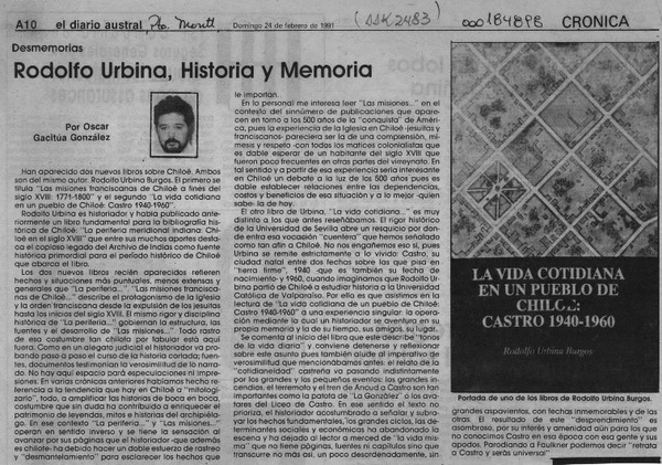 URBINA BURGOS, RODOLFO - VIDA COTIDIANA EN UN PUEBLO DE CHILOE, CASTRO 1940-1960, LA