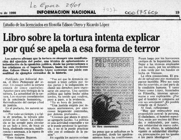 "Pedagogía del terror, un ensayo sobre la tortura" [artículo].