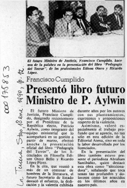 Presentó libro futuro Ministro de P. Aylwin [artículo].