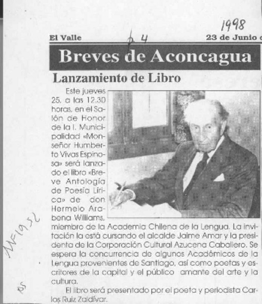 Con éxtio fue lanzada nueva obra de don Hermelo Arabena Williams [artículo].