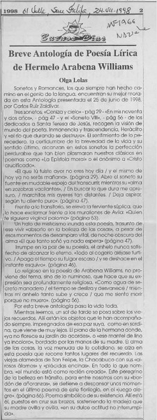 Breve antología de poesía lírica de Hermelo Arabena Williams [artículo] Olga Lolas.