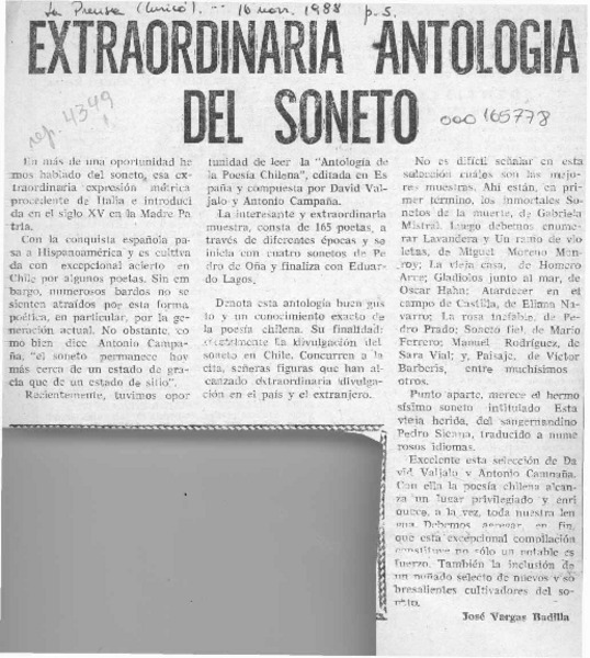 Extraordinaria antología del soneto [artículo] José Vargas Badilla.