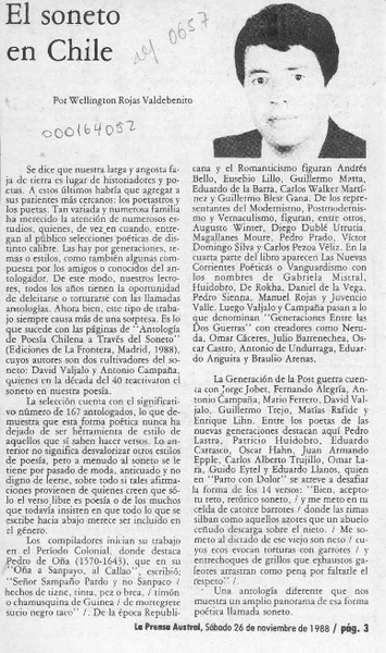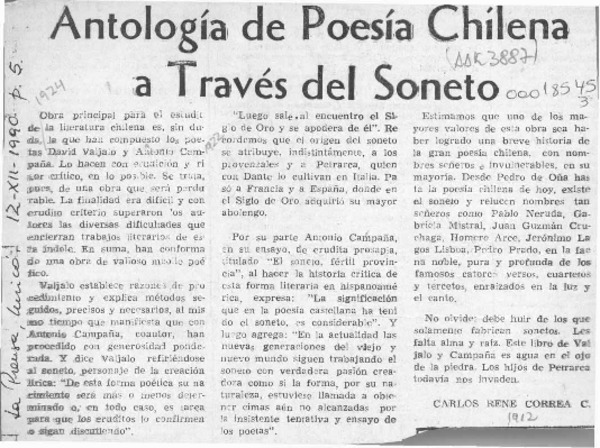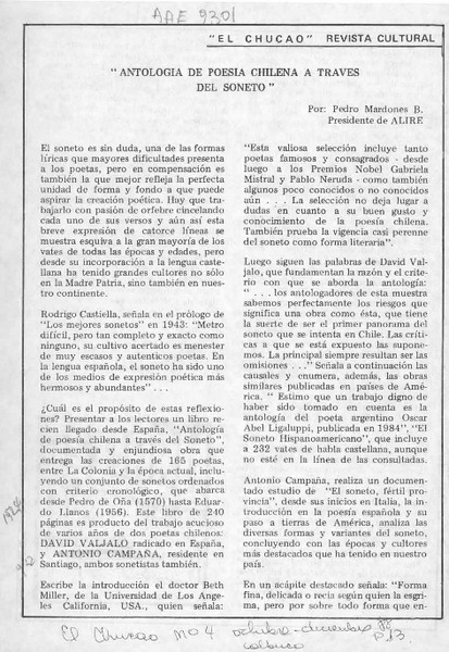 "Antología de poesía chilena a través del soneto" [artículo] Pedro Mardones B.