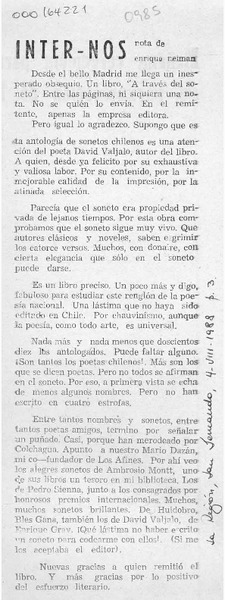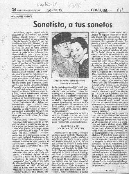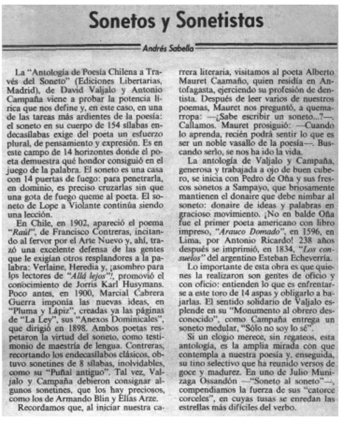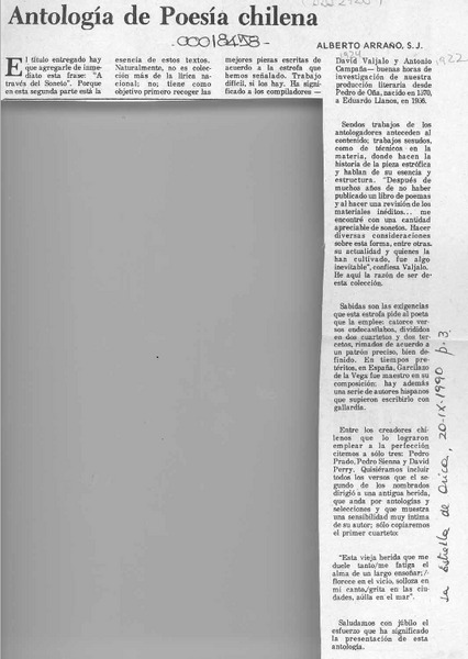 Sobre la "Antología de poesía chilena a través del soneto" [artículo] Alberto Arraño.