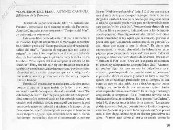 "Conjuros del mar" [artículo] Eduardo Baquedano A.