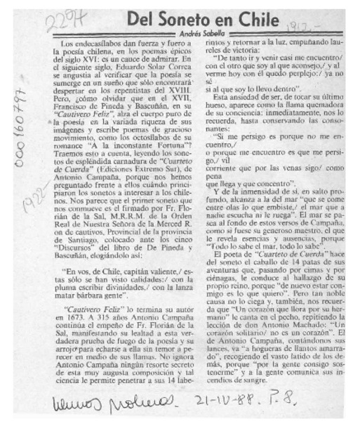 Los sonetos de Antonio Campaña [artículo] Hugo Montes.