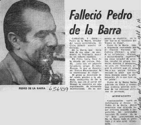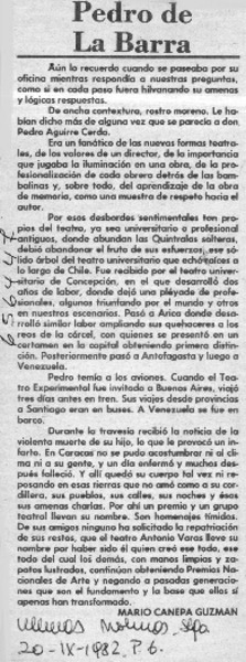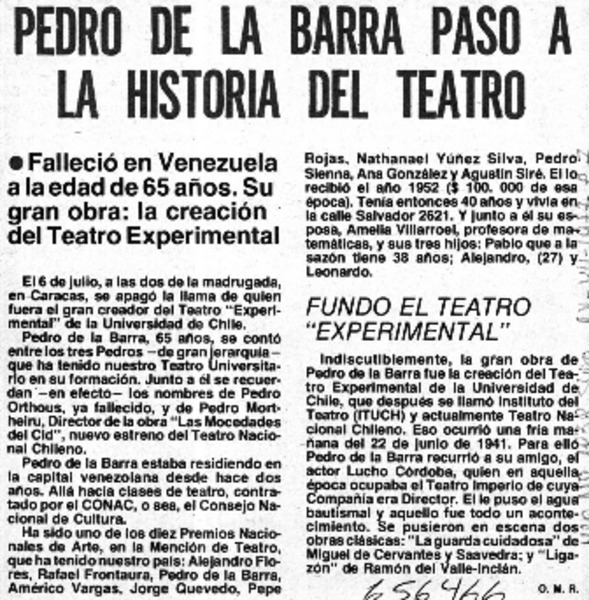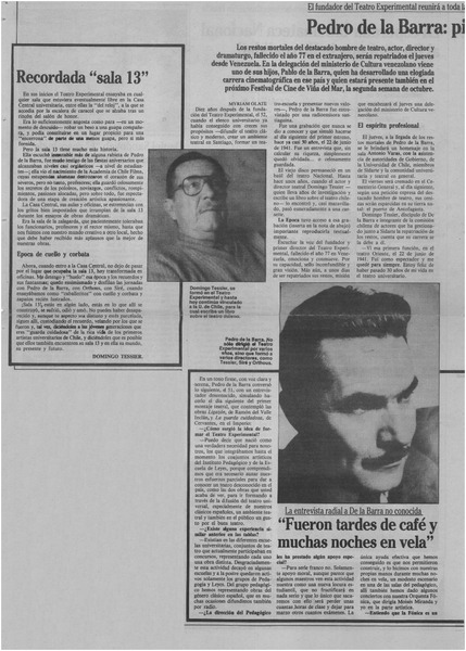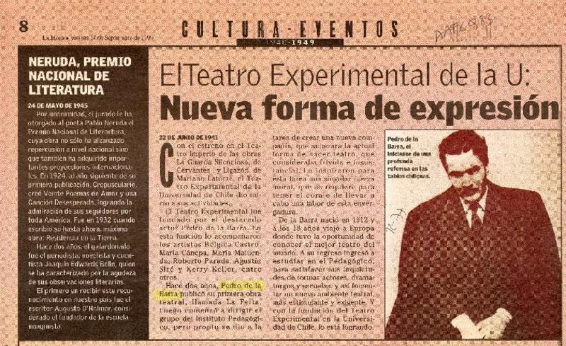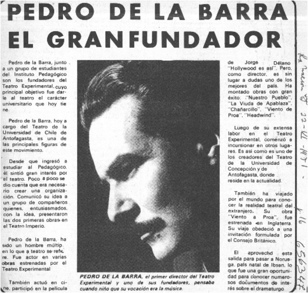 Hoy, hace 30 años, fundó Pedro de la Barra el teatro experimental. [artículo]