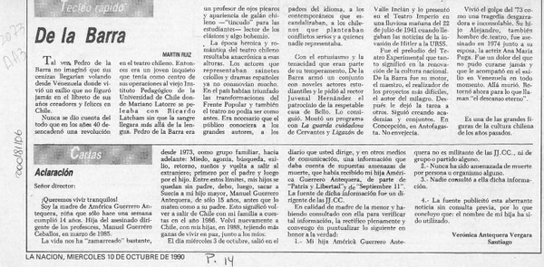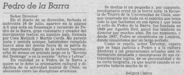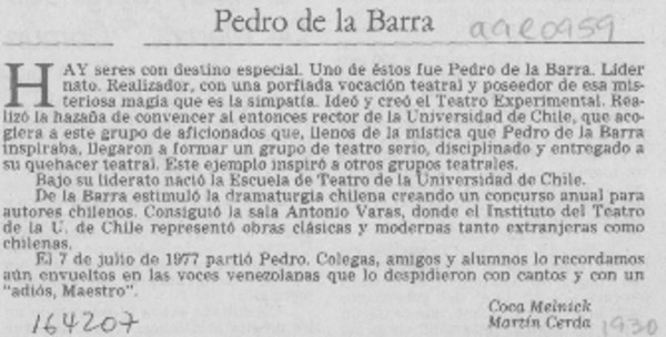 Pedro de la Barra [artículo] Martín Cerda [y] Coca Melnick.
