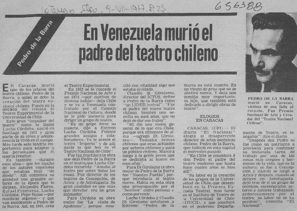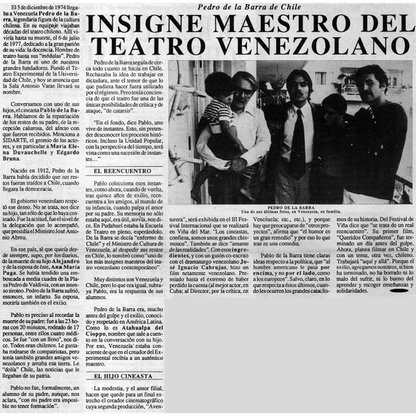 En Venezuela murió el padre del teatro chileno. [artículo]