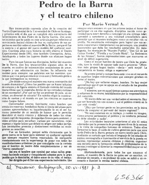 Pedro de la Barra y el teatro chileno [artículo] Mario Vernal A.