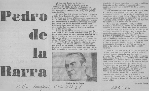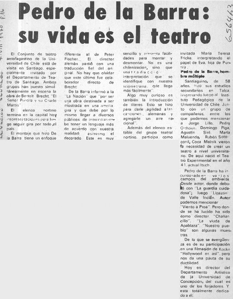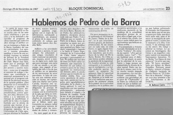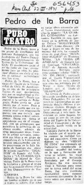 Pedro de la Barra, su vida es el teatro. [artículo]