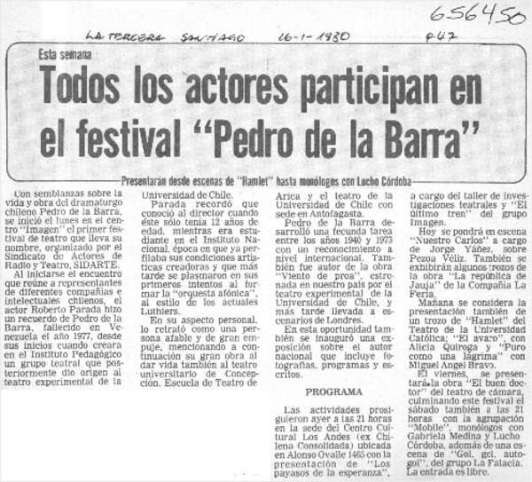 Todos los actores participan en el festival "Pedro de la Barra". [artículo]