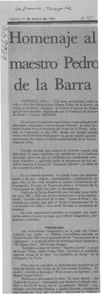 Homenaje al maestro Pedro de la Barra. [artículo]