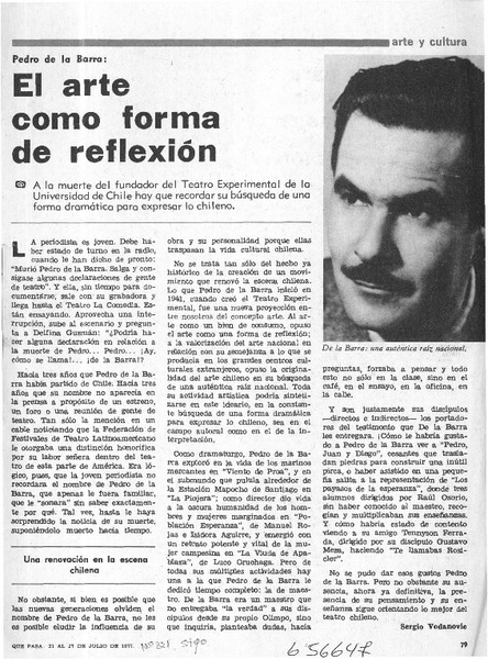 El arte como forma de reflexión [artículo] Sergio Vodanovic.
