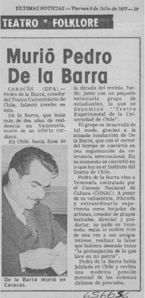 Recordarán hoy a Pedro de la Barra. [artículo]