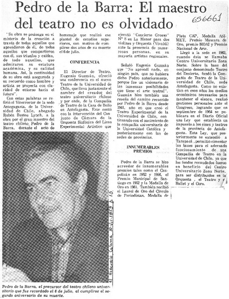 Pedro de la Barra, el maestro del teatro no es olvidado. [artículo]