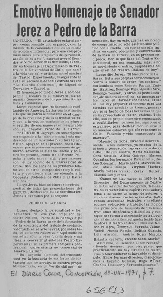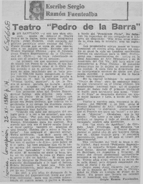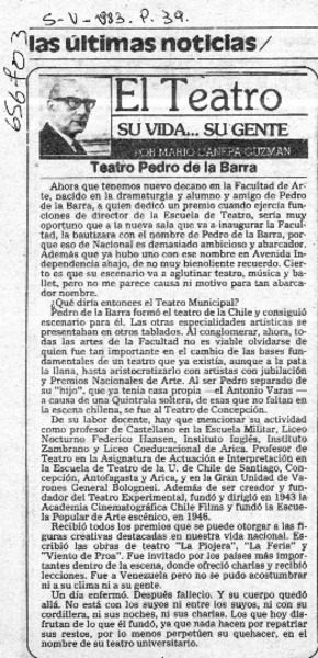 Teatro en homenaje a Pedro de la Barra. [artículo]