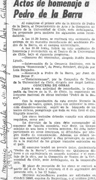 Actos de homenaje a Pedro de la Barra. [artículo]