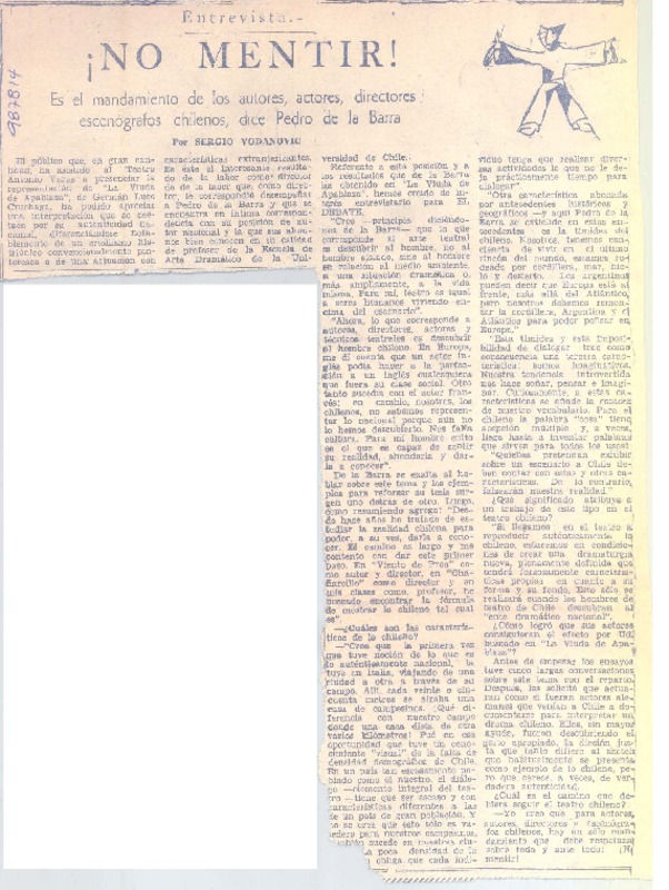 ¡No mentir! (entrevista) [artículo] Sergio Vodanovic.