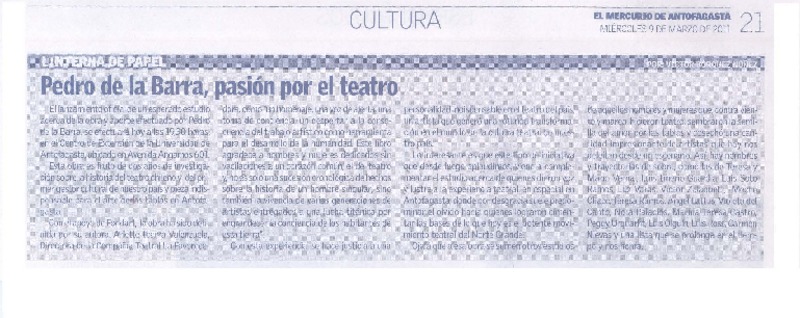 Pedro de la Barra, pasión por el teatro [artículo] Víctor Bórquez Núñez.