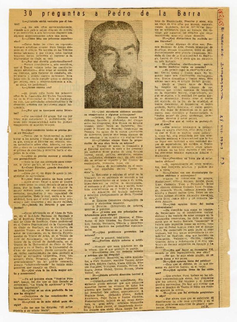 30 Preguntas a Pedro de la Barra [Entrevista] [artículo] : J.C.D.