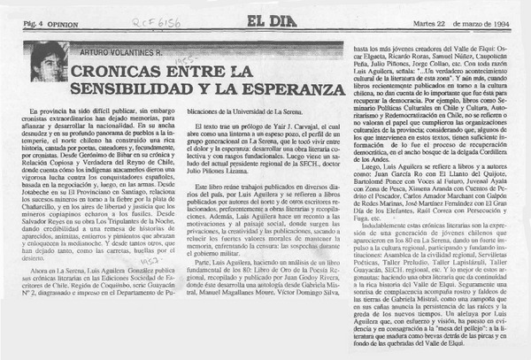 Crónicas entre la sensibilidad y la esperanza [artículo] Arturo Volantines R.