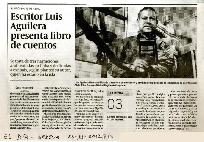 Escritor Luis Aguilera presenta libro de cuentos [artículo] Óscar Rosales Cid.